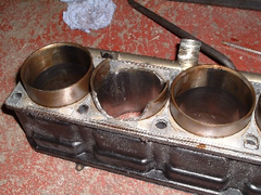 end on piston no2 let go, the piston got mashed to bit taking the valves with it. The conrod still on the crank took the front and rear of the block