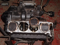 This was a still running ZZR 1100 engine which had a bit of a miss. When removed had run number 3 big end allowwing the piston to hit the cylinder