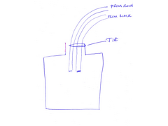 Do you think something like third sketch titled Idea would be better? Basically a taller bottle, 2 inlets entering at top but going further down, vented around the neck of the bottle??