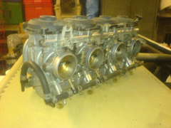 The other two connectors between the same carbs is air in, needs connecting to airbox, or, as on the ZXR750 just a couple of pipes pointing