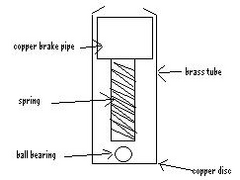 fit ball bearing and spring. Fit short length of brake pipe so that spring is under tension. season to taste. peen (?) over end of tube to keep