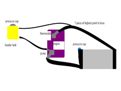 your header tank connects to your thermostat housing? how have you done that?