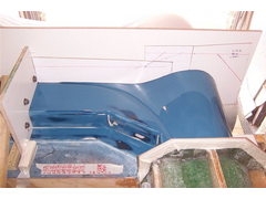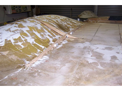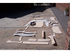 taped to the wood sheets and cut with a jigsaw. I used 22 ribs along the length and interpolated the curvature. I don't know if you will need as