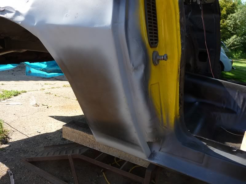 Body isn't in bad shape under the hinges, just some light surface rust which is now sorted. The car was originally dark metallic grey by the