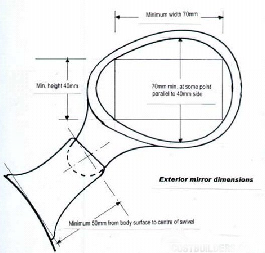 any exterior mirror must have a reflective surface large enough to accommodate a rectangle 40mm high by 70mm wide