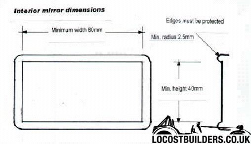 any interior mirror must have a reflective surface large enough to accommodate a rectangle 40mm high by 80mm wide