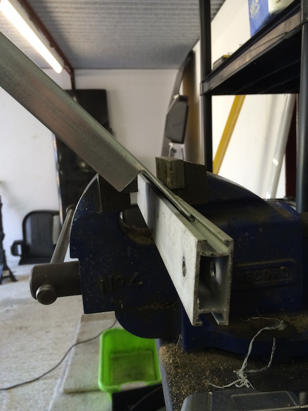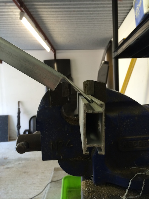 Got a piece of ally in the vice, and used a straight edge to put a nice neat kink in it