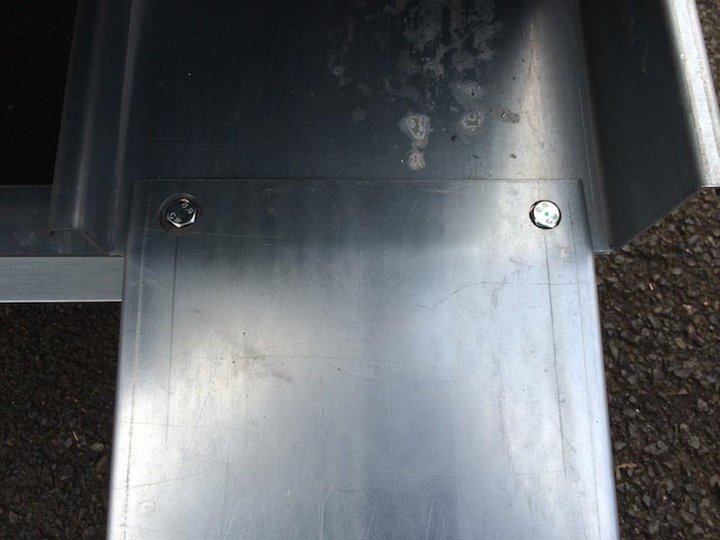 Cut a spacer the same height as the edge of the ramps, and passed an M12 bolt straight through with an incorporated washer, to use the head as a way