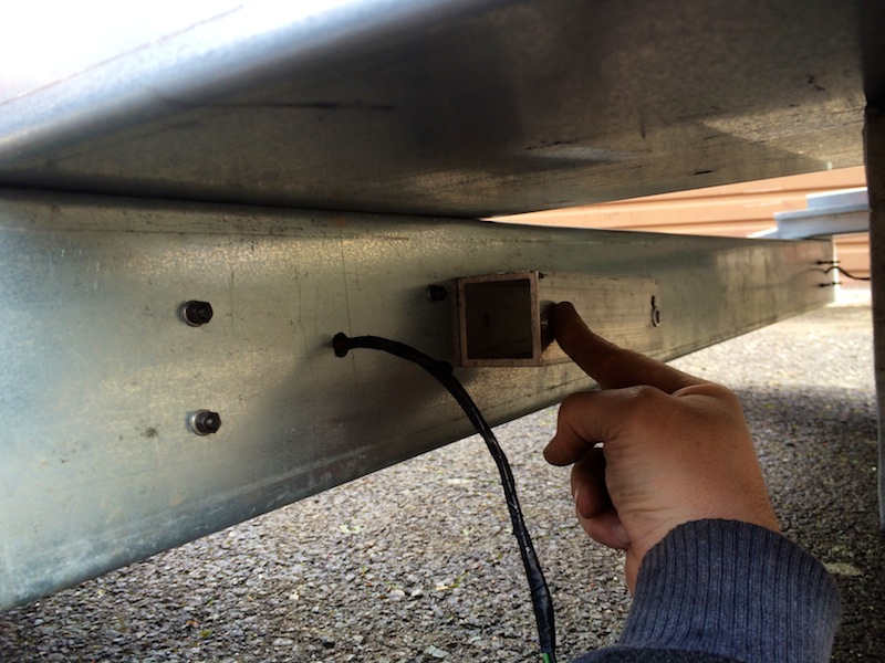 Here is the back end of the trough, and the wiring not coming through, you'll notice that there are only two dome headed bolts holding them on -