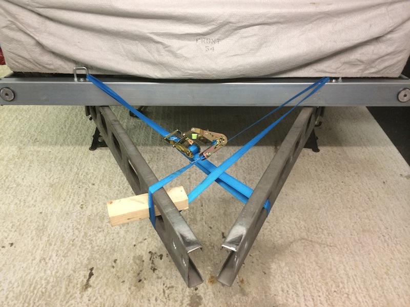 Strap it up to increase the angle - I hadn't bolted the troughs to the A-frame yet for this exact reason