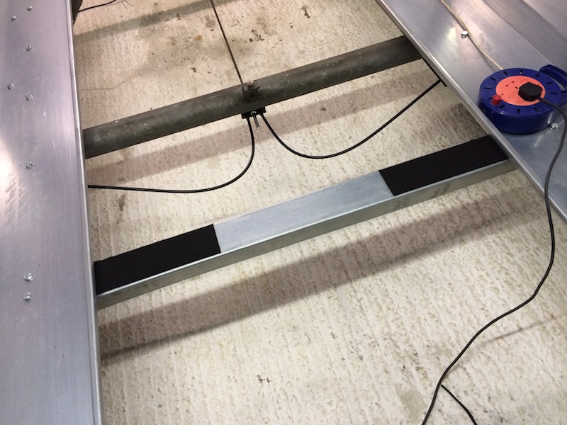Front one wired up with no visible sign of wiring, these do pass through the trough, and then run up under the from box section, because it