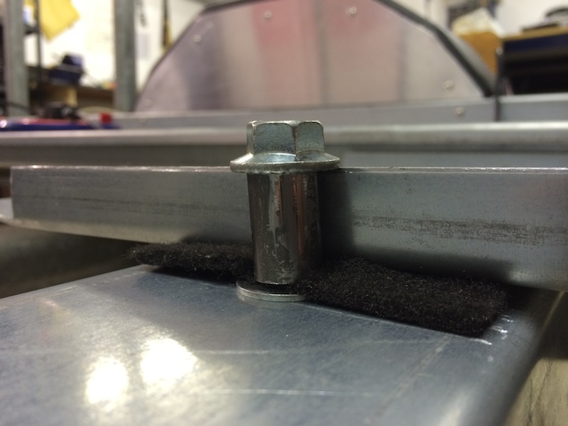 Not keen on rattles, cut some carpet, and Tiger-sealed it onto where the ramps are going to be mounted, to make them silent and easier to slide on and