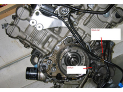 on the bike would have run behind the mcyl assembly and gone to the rear sprocket. as its now coming straight out this is now the problem.