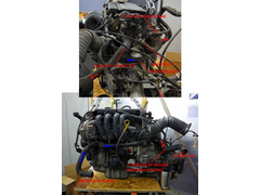 connect the smaller inlet on the water pump directly to the angled connector under the coilpack to ensure good flow before the thermostat opens. The