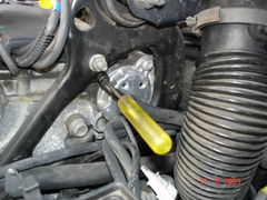 It is to the left of the crank position sensor but due to the support strut being in the way, I cannot work out how to remove/replace it.