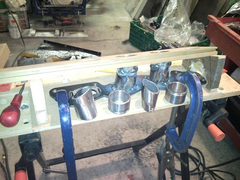 piece of wood at the right angle and distance i wantedd from the head. The flange was then clamped on to this centrally and the 4 short tubes put