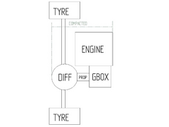 The diff is mounted offset to the right with the engine just left of the centre. This will also keep most of the weight as low as possible and compact