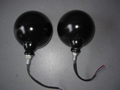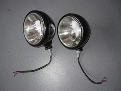 1) 5 ¾" Headlights in Black, some marks on the side where cycle wing hits, good condition with good bulbs - £60 + P&P