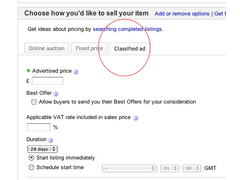 After you've created the listing you get three tabs, Online Auction, Fixed Price, and Classified Ad.