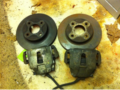 Sierra rear callipers and solid discs. Came from an XR4x4 that I broke for the diff. They were working when I took them off the car, bit grubby