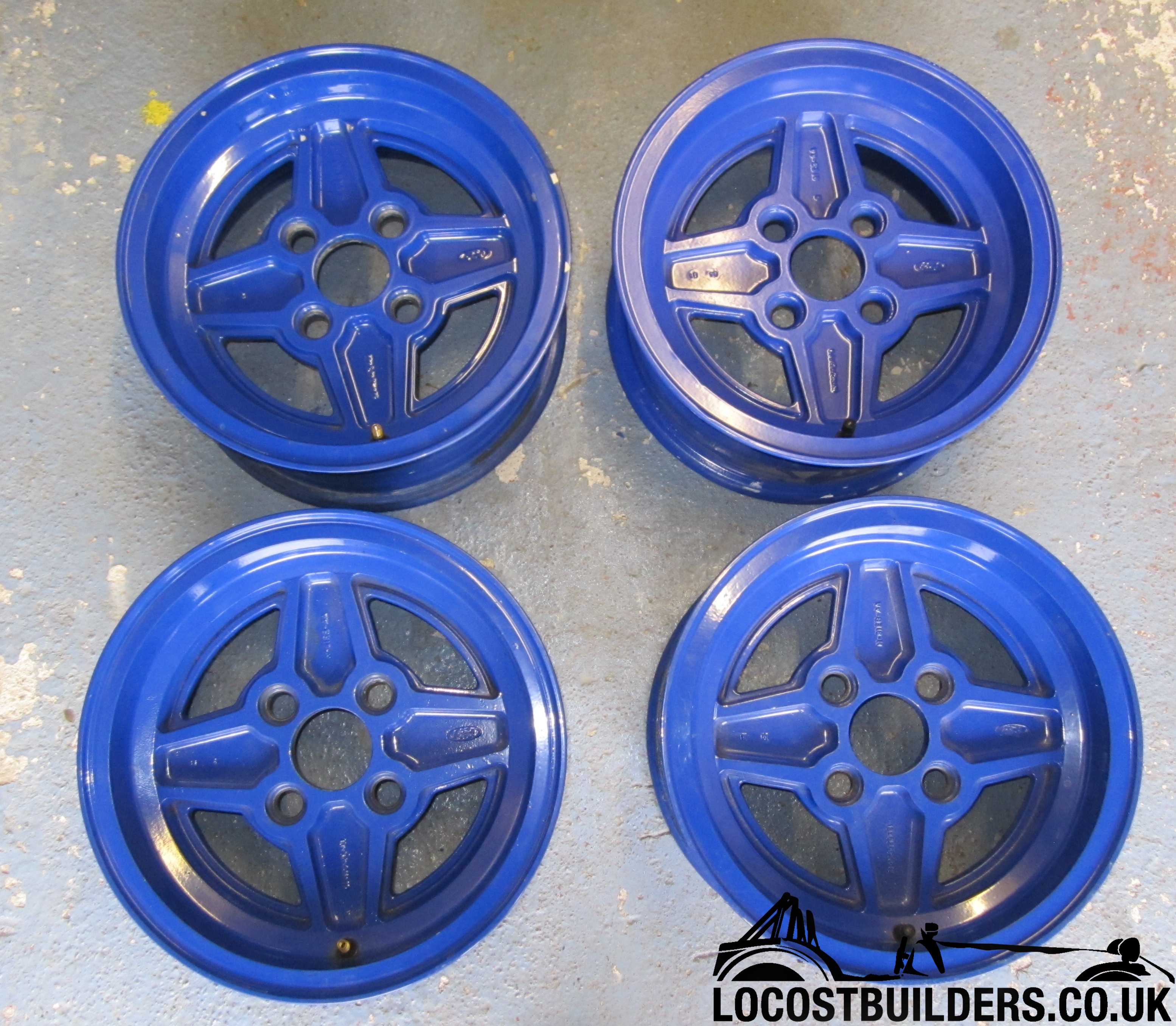 you get a very light set of wheels without spending mega bucks! Powder coated in blue, 3 look perfect from the front, one has a couple of chips to the