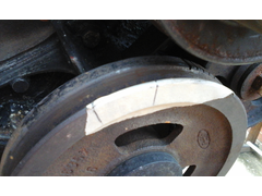 Undo the bottom pulley bolt and make sure that the bottom pulley still has an intact woodruff key in it. The Key way should (IIRC) be vertical (edit