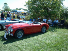 I saw this car and a couple of others of the same year(ish) 55 austin healey with a nicely done factory windshield. Goes from wind screen to