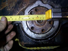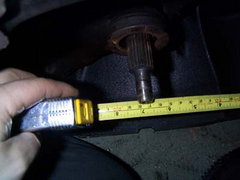 the crank for an input shaft suppport bearing. Take a 3/8" drive extension & insert in through clutch splines till you come to a stop. mark distance