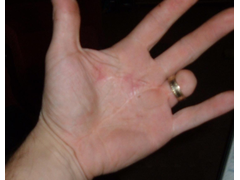 3/ Finishing a component in the lathe using a file with no handle, the file hit the chuck and it was forced through his palm and out of the back of