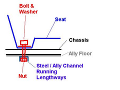 I am designing captive but removable bolts into my seat brackets, basicaly a sloted piece of steel with a couple of shoulders welded on to stop the