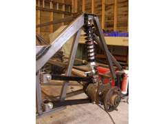 Early Mk/Ron champion de-dion allowed longer upper trailing arm bolt to permit mounting of the damper in single shear.