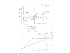 The computor generated graph shows the voltage supplied to the comparator, when the black line and solid/dotted red lines cross, that is the point at