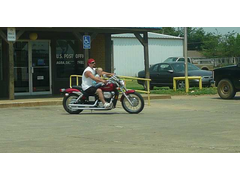 I thought for a minute that he was giving the little girl a ride around the car park, but no he pulled onto a 65 mph state highway shortly after i took the photo