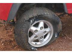That wasn't the only tyre they lost - one was eating the spare whilst others where busy on some of the other wheels - not sure how many where