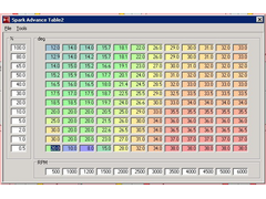 I set the advance to a static 10 degrees. I set the throttle stop to get the engine to idle at 1000rpm. I then created the following table: