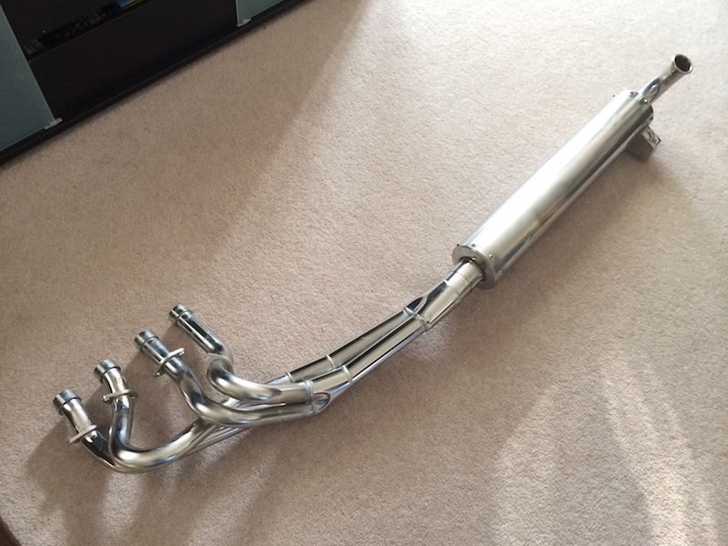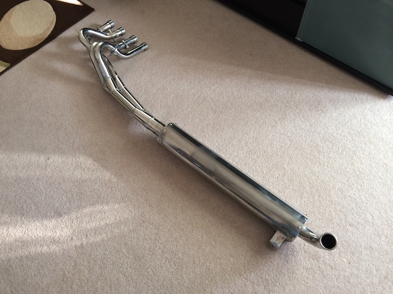 Stainless steel manifold with repack able silencer, although is only 4.75inches in diameter, it is 34inches long… whereas my current can is 6inches