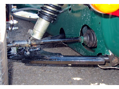 Caterham later models -- anti-roll bar now seperate from upper wishbone, lower wishbone redesigned.