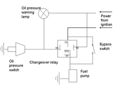when ignition is on). A bypass switch is wired in parallel to the relay to provide the ability to prime the carbs or as a "get you home