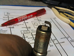 Well, I managed to finally get the spark plugs out (NGK PTR5A's...)