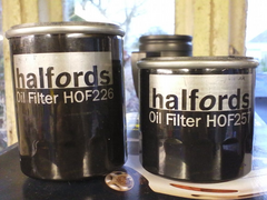 Spent 20 minutes in Halfords finding a smaller M20 thread oil filter as the full size one hits the chassis rail....new one is off a Nissan Note!