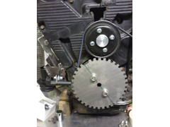 the front pulley of the crank pulley and drive both water pump and alternator. This meant spacing the water pump pulley. Luckily we have machine shop