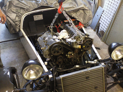 Once we had made a few minor adjustments to get the gearbox to sit far enough back and high enough in the tunnel we could test fit the engine and it