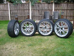 I have got a quote of £780 today for 4 x 7.5" x17 wheels two at ET38 and two at Et23 with tyres 235/40/17 and 205/40/17 kuhmo's, with