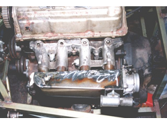 I think that if you look at the photo Cairb - Under bonnet side view, and Marks picture earlier on in this thread you will get some idea of the shape of the cut out section. It was tricky as the pipes curve a lot for the rear cylinder, which is the one that connects at a slight angle. The kit is based on the picture that Mark showed where the pipes were still round in cross section. Mine deviate somwhat from this, but it doesn't seem to affect performance significantly.