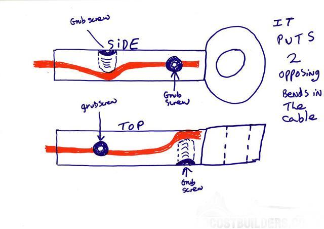 I can see what you mean, but can't figure out why two grub screws can hold the cable and my M8 bolt and two washers squashing it flat won't