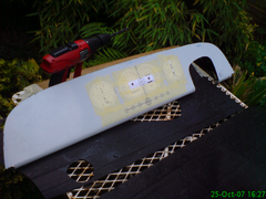 Counter sunk holes were used to trial fit the instruments in the dash before vinyl covering could commence. The countersunk screws were bonded in to the dash before covering over the top of them.