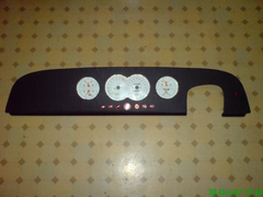I took all the instruments out of the cluster removed the needles and the dial facias themselves. Managed to find an image of some white dials someone had designed on a toyota forum. This printed out on clear acetate and then painted the back white. I did this so they could be backlit.